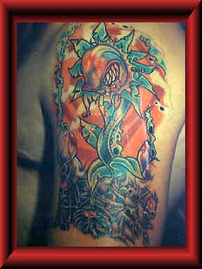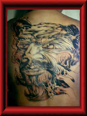 TIME SPENT: 20 hrs. This took 1st place best back piece an 3rd best strange it's a guy aitchison moko devil from one of his paintings , we finished it in color..... | ![]() |